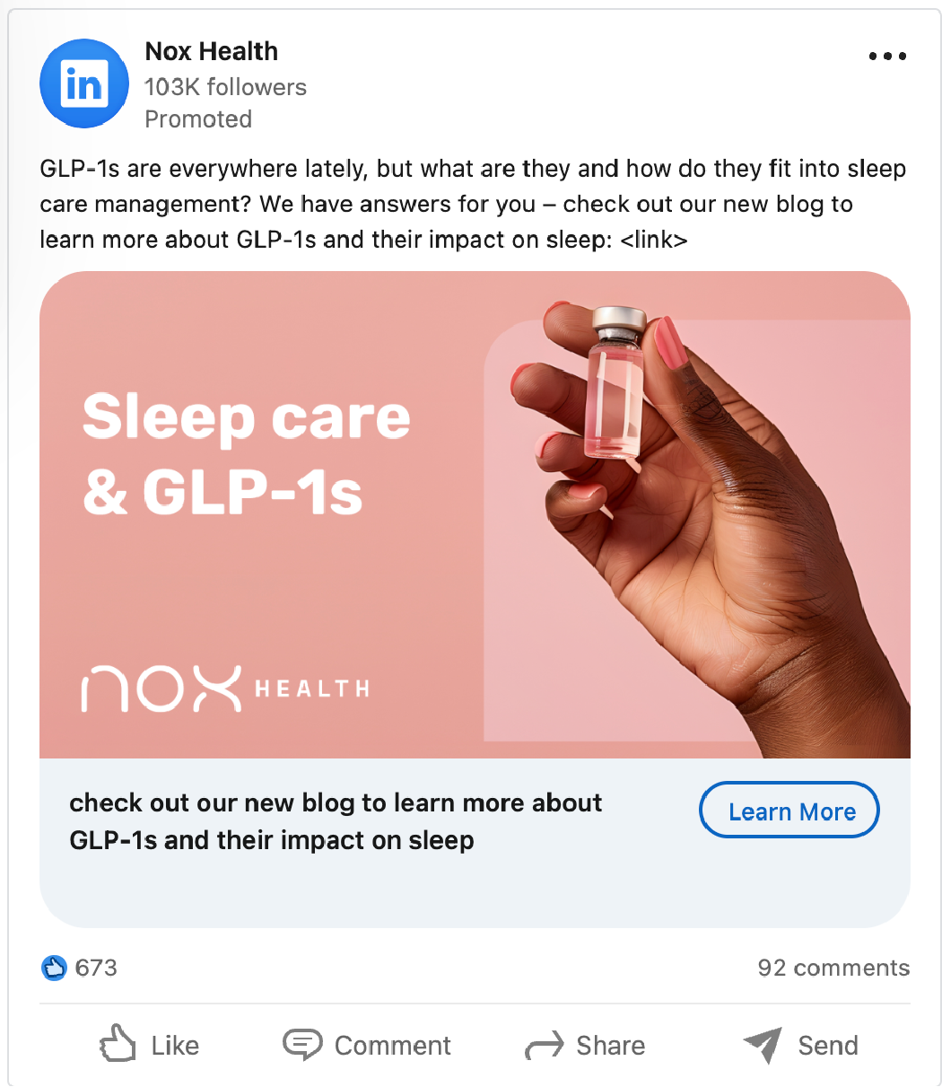 Since joining Nox Health in 2023, my main marketing goal has been to make our mission visually engaging. I needed to restructure the story of Nox, a health benefit company with Icelandic roots, and emphasize the power of sleep. Previous communications were mostly created in Canva and, unfortunately, did not clearly convey Nox’s ultimate goal. I was tasked with redesigning old materials to make them more compelling and creating new content. From monthly member communications and physician presentations to B2B social media and storyboarding our web (and mobile) version of the Member Experience, this has become a highly collaborative environment that improves with each project.